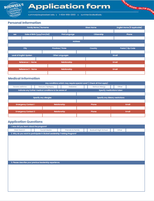 Bodwell’s 2026 Global Leadership Training Program is coming up from July 6 – August 18, 2026. We would like to attract interested and motivated young people, age 21 and older, from around the world to Vancouver, BC, Canada.